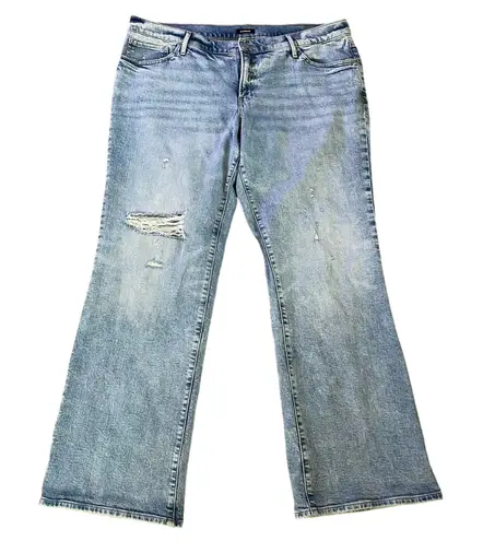 Express Low Rise Bootcut jeans. Distressing and holes. Zipper fly. Size 16R. Preowned, no noted... Show more