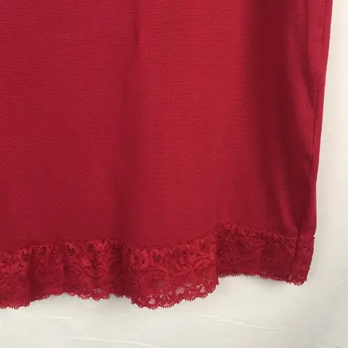 Red nylon skirt with lace trim in the same color on the bottom. Brand: Express Size: small Materia... Show more