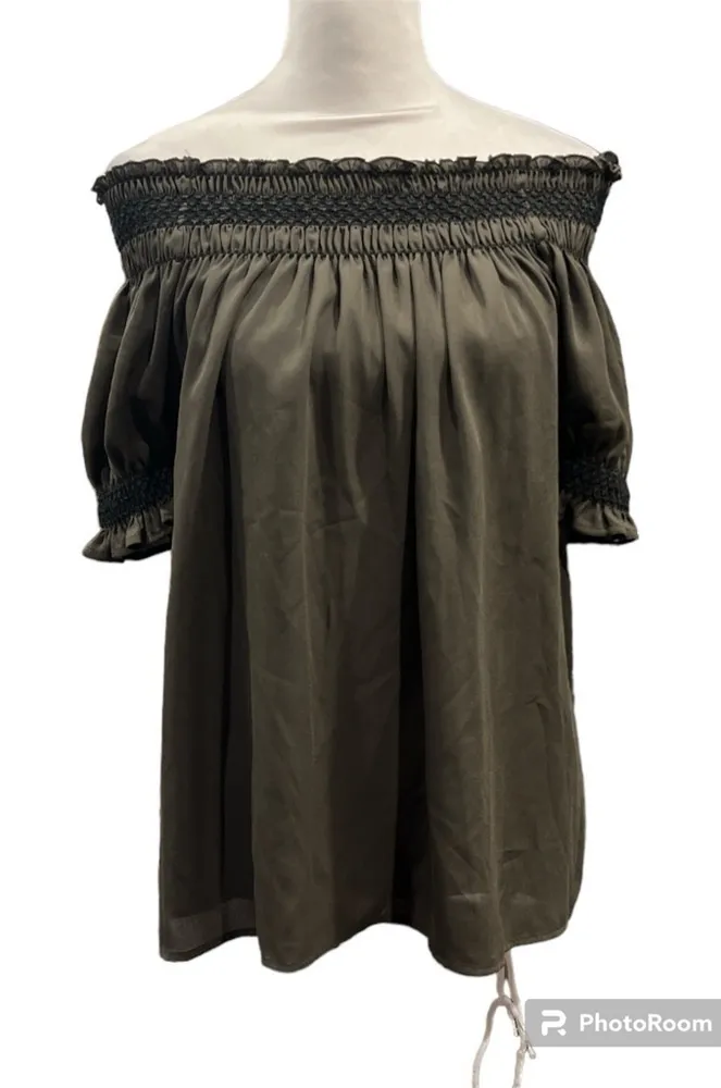 Smoke free home New with tags Express Smocked Off Shoulder Brown Blouse Size Medium