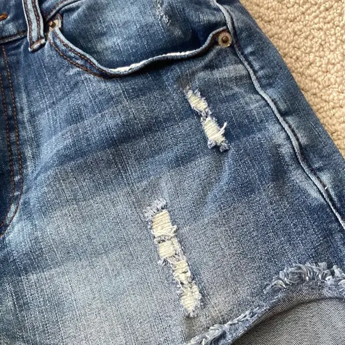 Express Super High Rise Distressed Jean Shorts 2.75” Fringed Midi Size 2 EUC Like new condition Exp... Show more