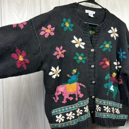 Express Sweater Small Vintage Floral Cardigan Cotton Grandmacore 90s Horse Knit Weight: 1.7lb Size... Show more
