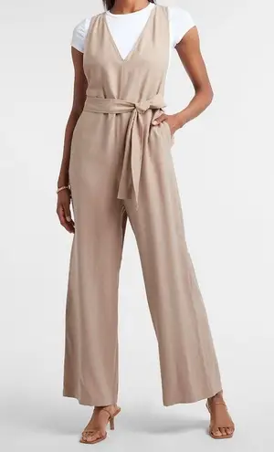 Express New with tags Size XS Tan wide leg Racerback overalls Tie waist Side pockets