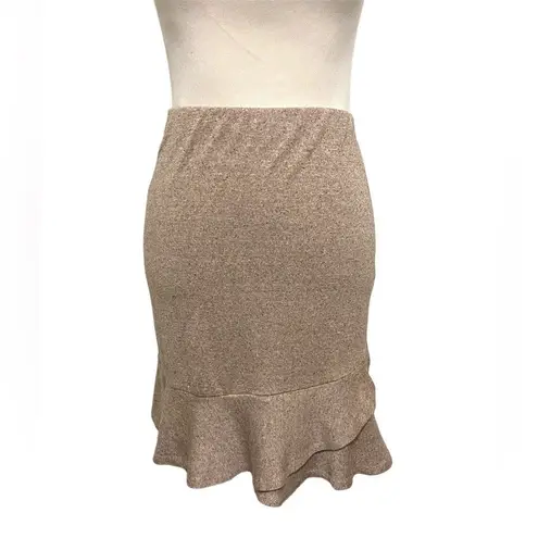 Express Light Tweed Textured Ruffle Peplum Hem Skirt Pull On Stretch Tan Brown Color Women’s Size XS... Show more