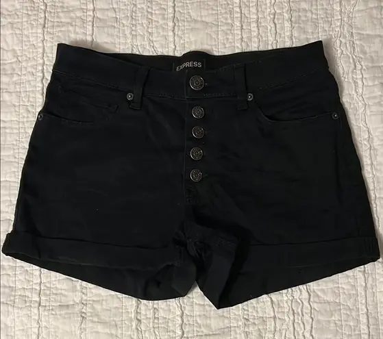 Stylish and versatile, these black shorts from Express feature a chic button-up design. Perfect for... Show more