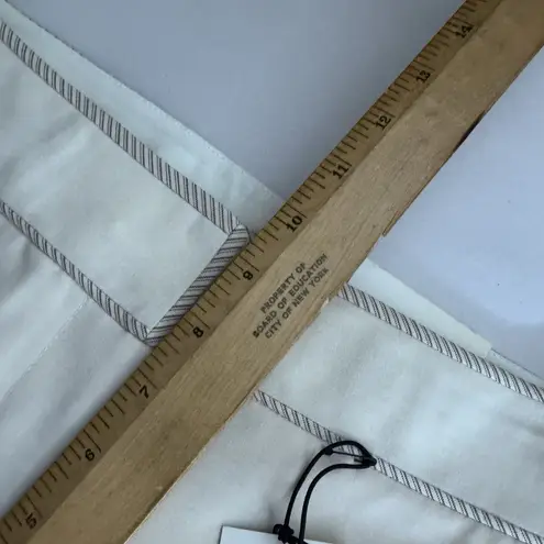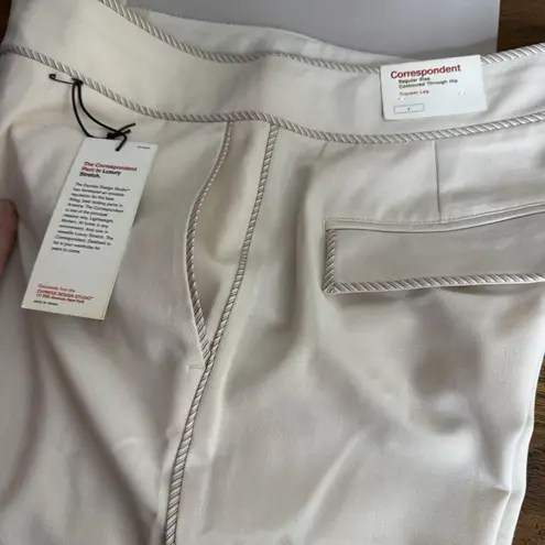 No issues. Very little beige and close to ivory color. Waist flat across 15" Rise 9" Inseam 31"