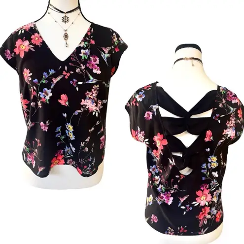 2. EXPRESS NWT OPEN STRAPPY BACK ALL OVER PRINT FLORAL HUMMINGBIRD TOP SMALL. EASTERN FLORAL 23" LONG, 17-17.5" PIT TO PIT, 16" ACROSS THE WAIST