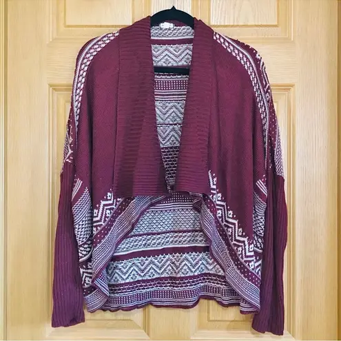 Eyeshadow Burgundy and White Duster Cardigan Sweater with Southwest Aztec Pattern Long Sleeves •Size... Show more