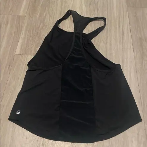 Sleek black tank top with racerback design. Ideal for workouts or casual wear. Soft and comfortable... Show more