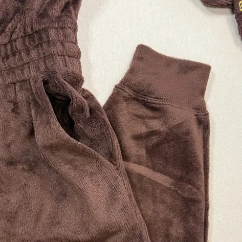 Plush fabric with a relaxed fit. Perfect for lounging. Features adjustable waist.