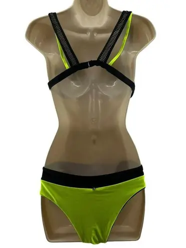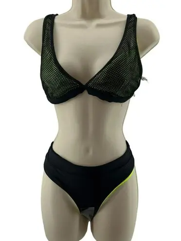 Fabletics Neon Yellow Mesh Top Reversible Bottom Bikini Set -Black Mesh overlay triangle bikini top... Show more