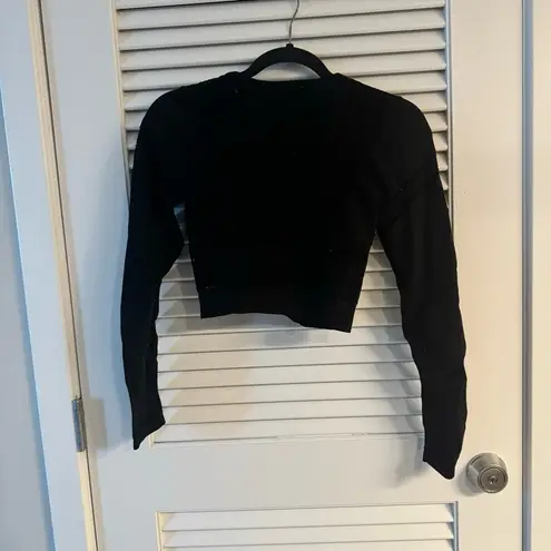 Black cropped athletic long sleeve top. Top is seamless and has laser cut design. Brand:Fabletics S... Show more