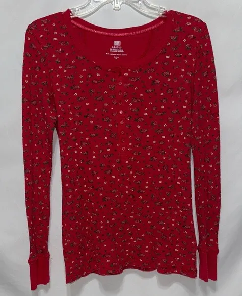 Floral Long Sleeve Henley Thermal Top Multiple Size L - $10 - From Deanna