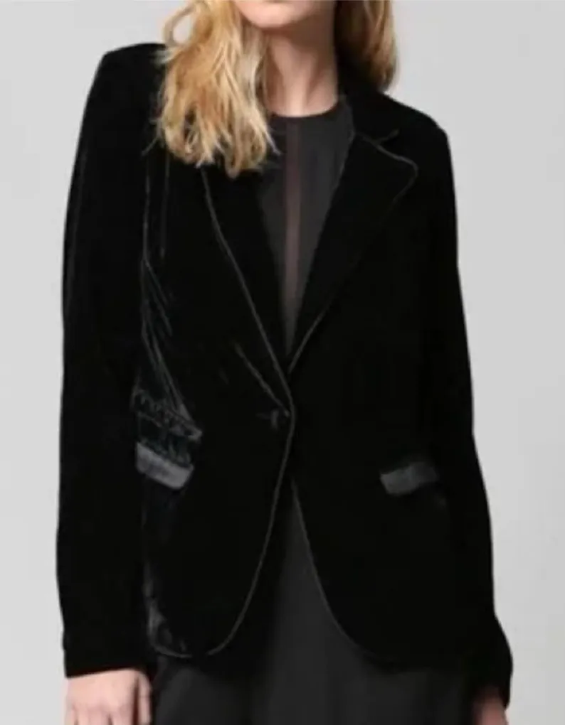 Chic black velvet blazer. Perfect for stylish occasions. Adds sophistication to any outfit. Fate Black Velvet Blazer – Size Large If you’ve been searching for that one piece that instantly elevates your whole outfit, this is it. This Fate black velvet blazer is rich, soft, and luxe in all the right ways. It has that timeless tailored look with a modern vibe—perfect for today’s fashion where polished meets effortless. The fit is flattering without trying too hard, and the velvet adds just the right amount of glam. Dress it up with a silky cami and trousers for a chic night-out moment, or throw it over a graphic tee and jeans for that cool, high-low street style everyone’s loving right now. You can even pair it with a slip dress for a holiday-ready look that feels both classic and bold. Size: Large Pit to pit: 20 inches (approx.) Shoulder to hem: 25 inches (approx.) Condition: Excellent Measurements are approximate. Fast shipping. I ship every day Monday–Friday except holidays. This is one of those pieces that makes you feel instantly put together. Grab it before someone else does! #velvetblazer #holidaystyle2025 #blazeroutfitideas #velvetfashion #chicstreetstyle