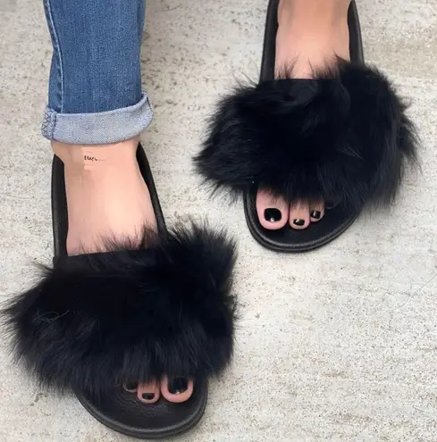 These stylish and comfortable sliding are a staple essential, add a little fur to your wardrobe and you're ready to be chic and classy everywhere. They will be the most comfortable pair of slides you'll never want to leave home without them. *Do not come with com to brush out. Upon arrival you can use your hands to brush them out and they'll fluff up easily since they're in a shoe box they do need a little touch up. *If you’re in between sizes. Size up. So a size 5, would be a 5.5 and so on