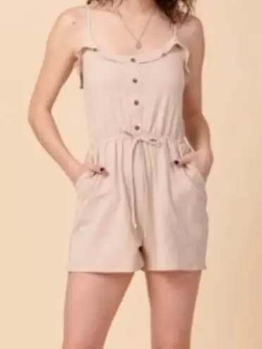 Favlux Size small Light tan/ beige button front romper Adjustable spaghetti straps Ruffle along neck... Show more