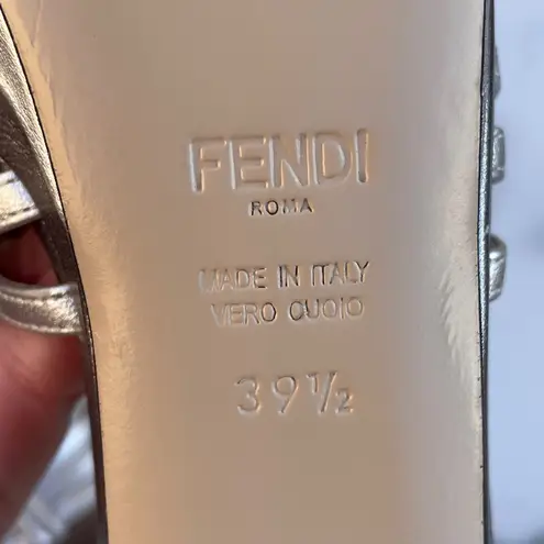 100% authentic Fendi Favorite T-strap platform sandal in argento and steel, size 39.5. There is very... Show more