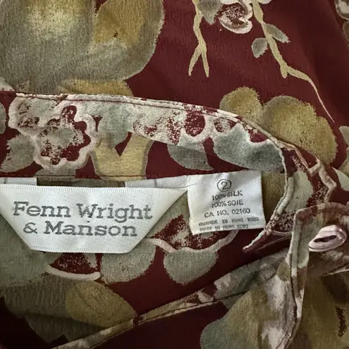 Fenn Wright Manson‎ Silk Blouse Size 2 High Button Neck Fall Colors Floral - $32 - From Ls