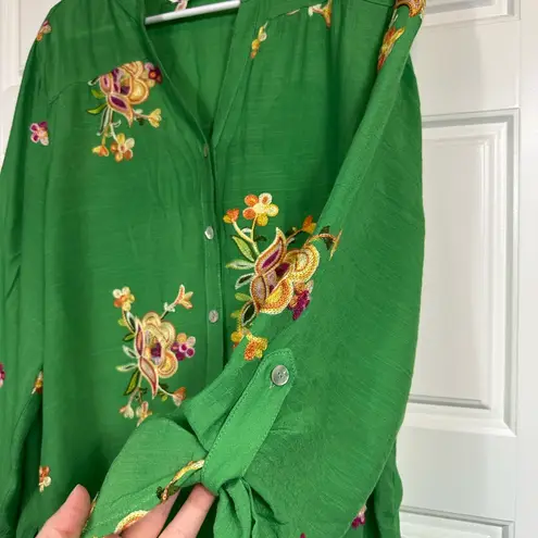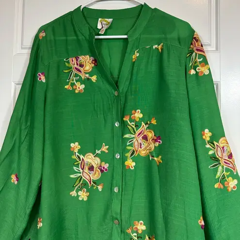 Fig and Flower Colorful Boho Embroidered Floral Print Lightweight Blouse Size XL Green - $30 - From Vanessa