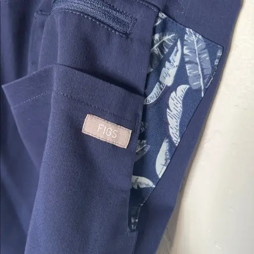 Brand: FIGS Style: Accra Limited Scrub Top – Style W19SW1001 Color: Navy Blue with Feather Print Siz... Show more