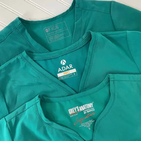 SET OF 3 Green, V-Neck & Short Sleeve Scrub Top; 1 FIGS, 1 Adar & 1 Greys Anatomy Size Small Measur... Show more