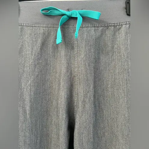 Stylish gray athletic pants featuring a teal drawstring. Perfect for workouts or casual wear.