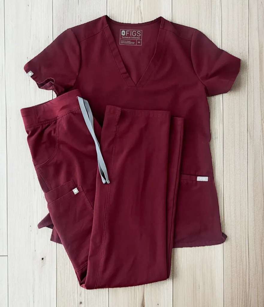 Figs maroon scrub set Women’s XS top camas 3 pocket scrub top Women’s XS tall Cade cargo bottoms I... Show more