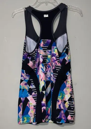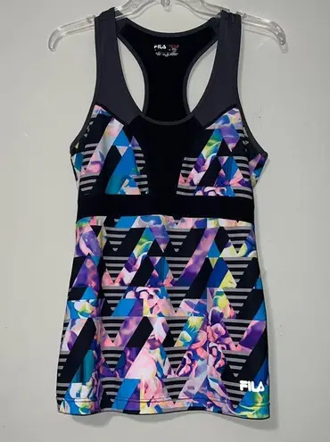 FILA racerback tank top built-in shelf bra black & multicolored geometric print Size M - $14 - From Melissa