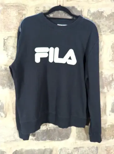 Fila Alexa Crew Neck Sweatshirt Woman's Large Black with white spellout Crewneck with Contrast colo... Show more