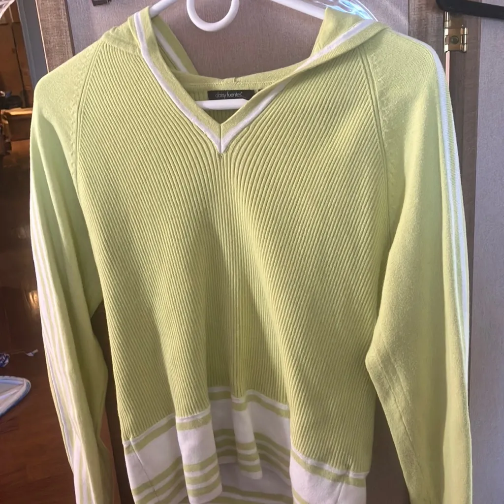 FINAL MARKDOWN Daisy Fuentes Green and White hooded Sweater Size M - $10 - From Mindy