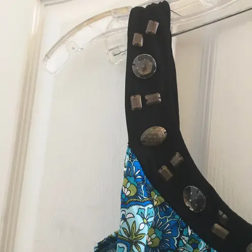 This is a junior tank style top with an embellished neckline and an elastic bottom FFU057
