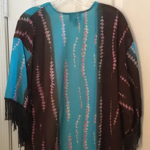 This is a Ladies’ Angie Sheer Fringed Open-front Top, Size: M. Made in India of 100% polyester. A... Show more
