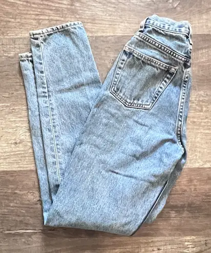 Light wash denim Does not have stretch Size 1 long Reverse style Mom Jean style