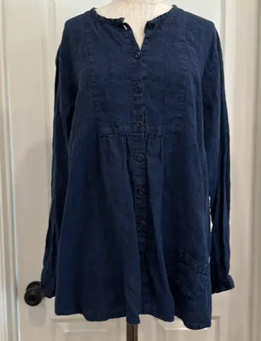 Flax long sleeve linen button down blouse Blue - $27 - From Chadney