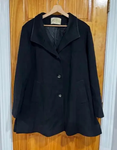 Timeless Fleurette black wool coat crafted from luxury Loro Piana Italian wool fabric. Beautifully tailored with a classic notched collar, button front, and fully lined interior. Elegant, understated outerwear with true quiet-luxury appeal — investment-quality fabric known for softness, drape, and longevity. Brand: Fleurette (est. 1949) Fabric: Loro Piana – Made in Italy Material: 100% wool Color: Black Size: Women’s 14 Made In: USA (Italian fabric) Features: Notched collar, button front, tailored silhouette, fully lined Condition: Very good pre-owned condition. Minor wear on collar in photo