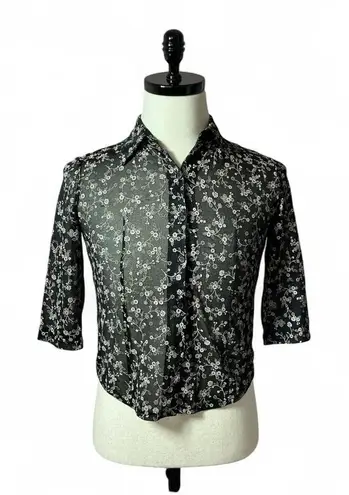 Floral Button Up Top, 3/4 Sleeve Blouse, Lightweight, Semi Sheer Shirt Unleash your inner romantic with this captivating button-up top. The delicate floral pattern dances across the semi-sheer fabric, creating a look that is both elegant and alluring. Featuring a classic collar and three-quarter sleeves, this blouse offers a flattering and comfortable fit. The lightweight construction makes it perfect for layering or wearing on its own during warmer weather. Dress it up with a skirt and heels for a night out, or pair it with jeans for a chic everyday look. Ideal for brunch with friends, garden parties, or a sophisticated office ensemble. Measurements: • Pit to pit: 17 inches Keywords: floral blouse, button up top, semi sheer shirt, 3/4 sleeve blouse, black floral top, lightweight blouse, casual top, dressy blouse, floral print shirt, women's blouse, spring top, summer top, evening top, party top #RomanticStyle #FloralPrint #LightweightTop #SemiSheer #CasualChic