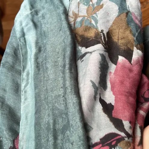 floral scarf green cream and pinks distressed edging light and flowy - $32 - From Monica