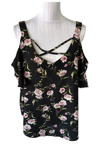 Flower & Feather Black Floral Cold Shoulder Blouse Size 3XL - $6 - From Reagan
