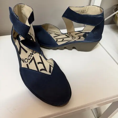 Fly London Navy Blue Suede Leather Cross Strap Shoes Wedge Size 36 5.5 Portugal - $44 - From Jasmyn
