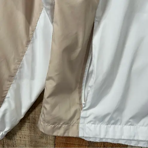 • FootJoy women’s lightweight golf jacket • Size Medium • Beige and white colorblock design • Ful... Show more