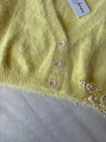 For Love & Lemons Devon Cropped Fuzzy Cardigan Puffy Sleeve Sweater Yellow size L BNWT, comes wit... Show more