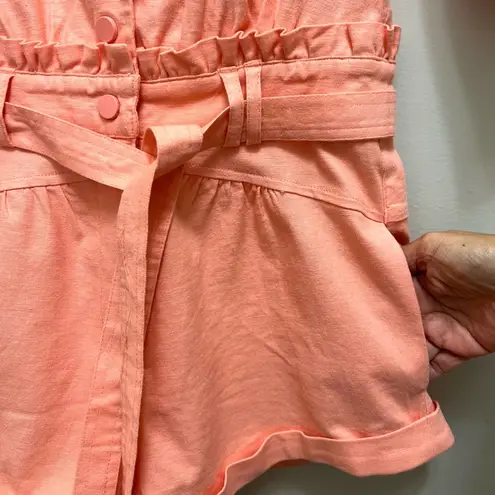 Good preowned condition Size XS - one piece short sleeve shorts romper - peach coral like color - s... Show more
