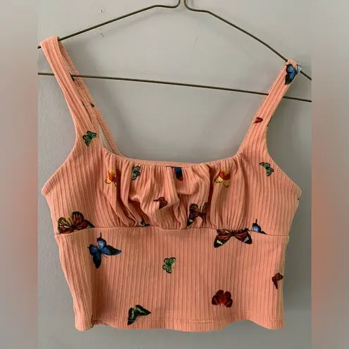 Butterfly Ribbed Cropped Festival Tank Top Peach Multi Color Size S Orange - $6 - From Bri
