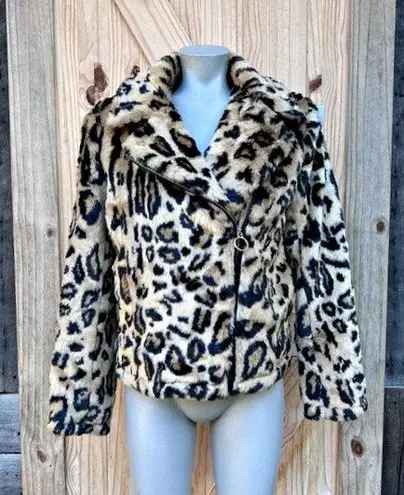 This Forever 21 Cheetah Leopard Print Faux Fur Bomber Moto Jacket has a zipper up the front, two poc... Show more