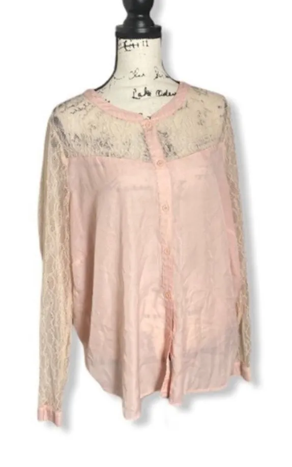 Forever 21 Plus 3X Blush Pink Lace Button Down Blouse Romantic Sheer Top ⸻ Add a soft, feminine to... Show more