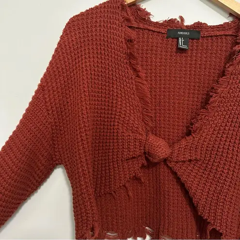 Forever 21 brand, size small Knotted front knit sweater Fringe hem Cropped Great condition! Smoke... Show more