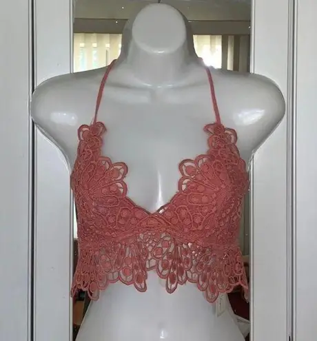Details A sheer crochet bralette featuring a surplice halter neckline with self-tie closure at the n... Show more