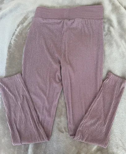 Light pink pants with sparkly stripes. Fit like leggings. Slightly see through, okay with neutral co... Show more