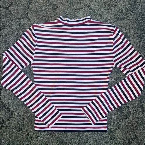 Chic top with red, black, and white stripes. Features gold button accents on the shoulder. In perfec... Show more