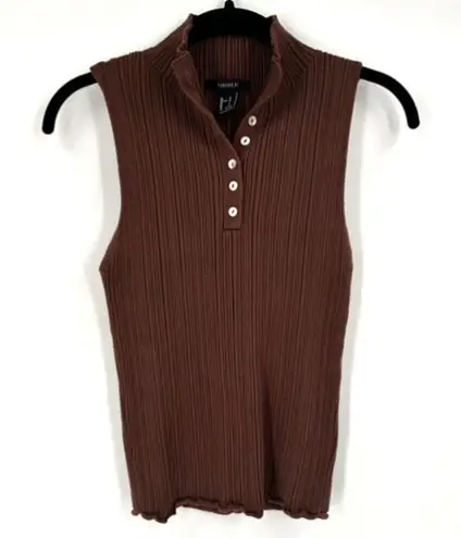 Vintage Y2K Forever 21 Ribbed Lettuce Trim Chocolate Brown Collared Top Large Great pre-owned condi... Show more