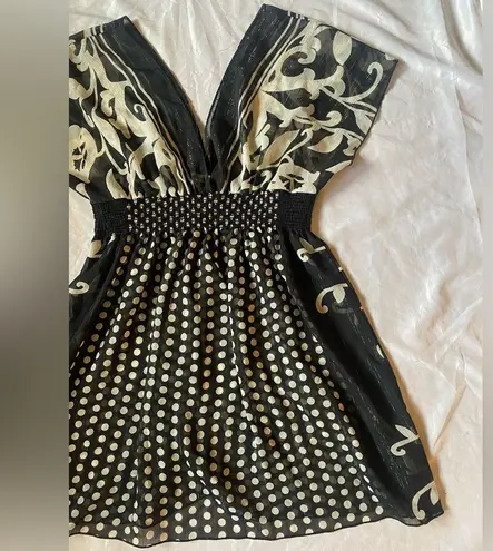 y2k black and white sheer floral and polka dot patterned top/dress (depending on height) brand is fo... Show more
